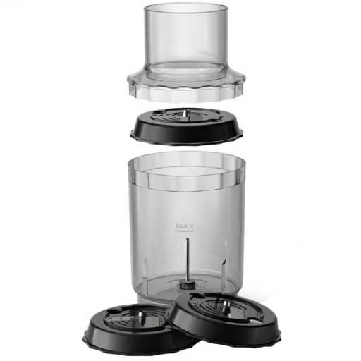 پیمانه شفاف درجه بندی شده برای مخلوط کردن به همراه درپوش, ,, خردکن مناسب سبزیجات، پیاز، گوشت و …, ,, همزن بالونی از جنس استیل ضد زنگ برای هم زدن سفیده تخم مرغ، خامه یا مخلوط کردن خمیر پن کیک